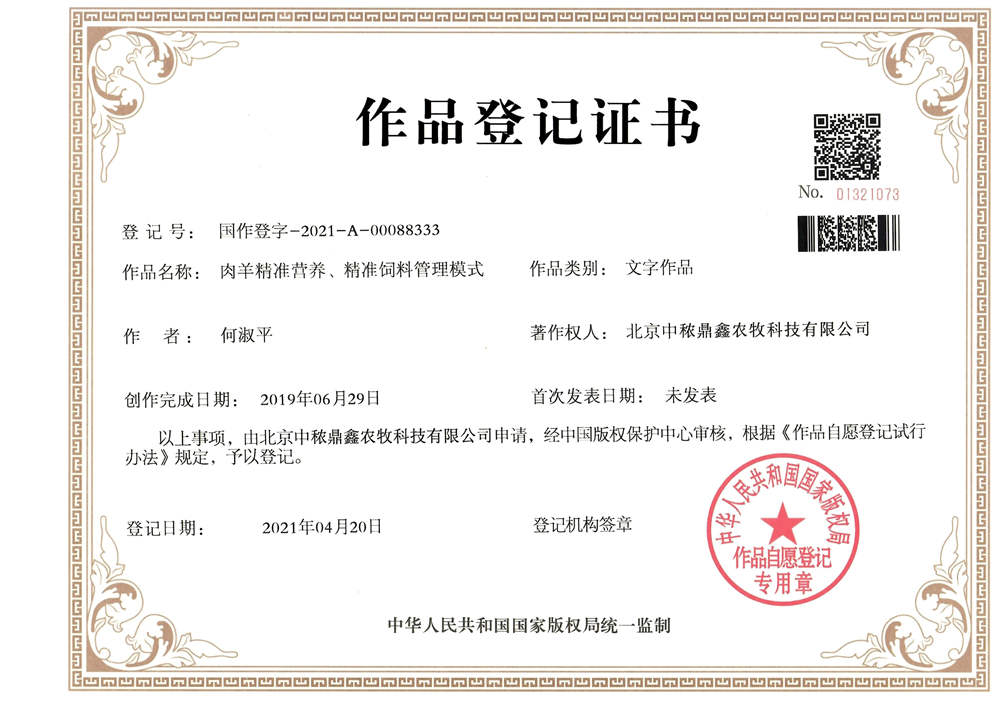 肉羊精準營養(yǎng)版權(quán)登記證書